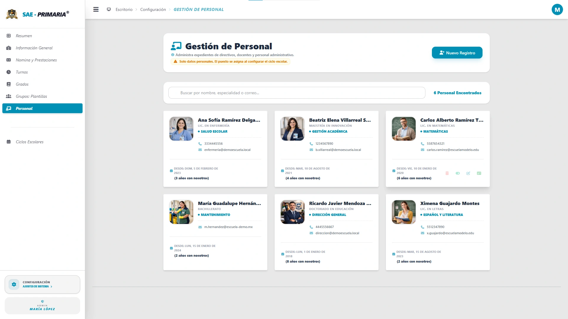 SAE-Primaria: El software de escritorio diseñado para la gestión eficiente de personal, nóminas y control escolar, con la privacidad que su escuela requiere.